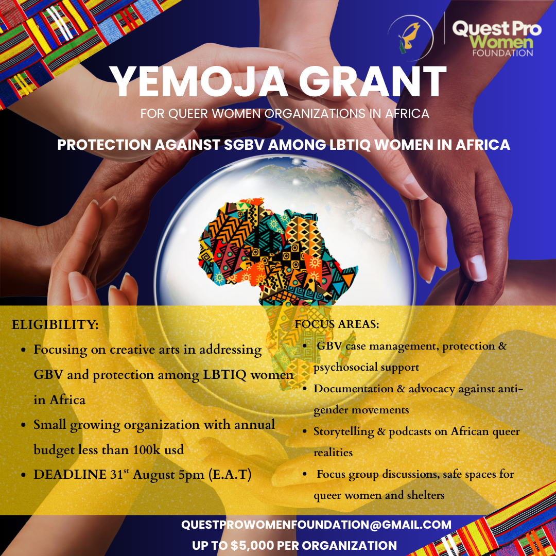 QuestPro-Women Foundation (QWF) is excited to invite applications for the Yemoja Grant—a flexible general support grant designed to strengthen growing, queer women-led organizations across Africa with annual budgets under $100,000.